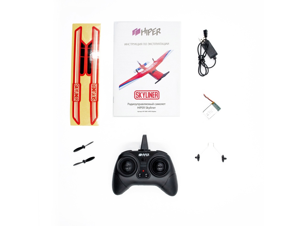 Комплектность: радиоуправляемый самолёт, пульт управления, аккумулятор, кабель USB, запасной винт, инструкция