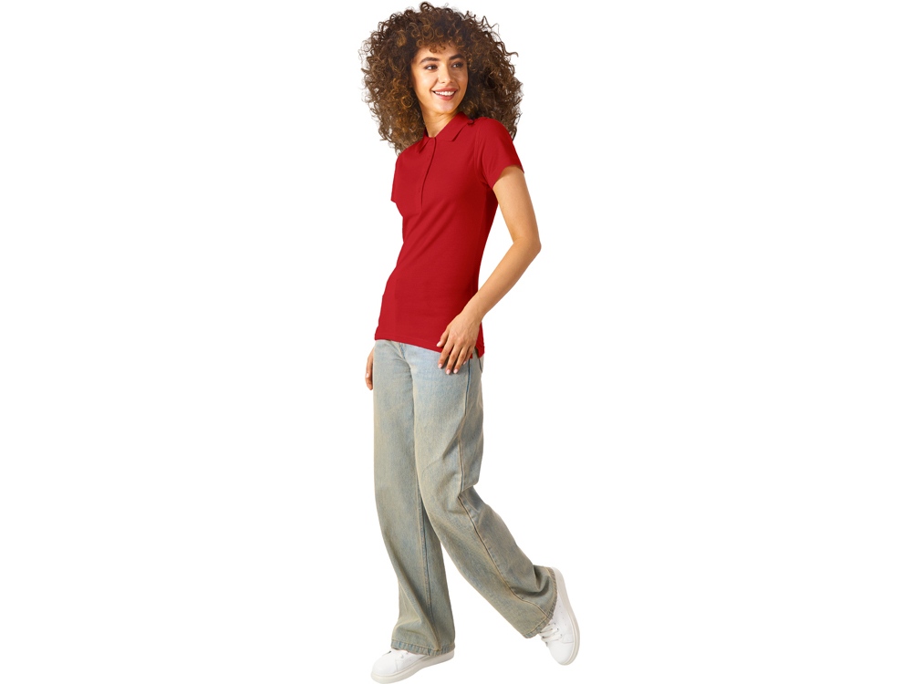 Женская рубашка-поло First. Воротник 1х1. Обшивка внутри воротника. Мужская и детская модели с 2 пуговицами, женская - с 4 пуговицами. Пуговицы с гравировкой в тон. Пике, 100% хлопок. 160 г/м2.