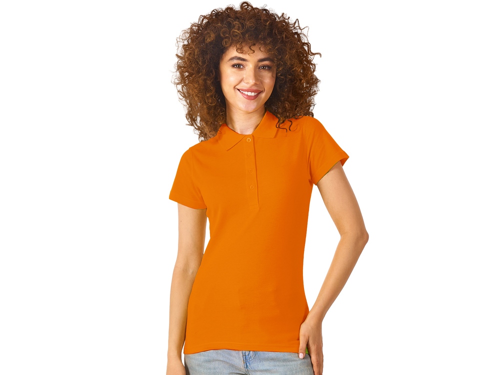 Женская рубашка-поло First. Воротник 1х1. Обшивка внутри воротника. Мужская и детская модели с 2 пуговицами, женская - с 4 пуговицами. Пуговицы с гравировкой в тон. Пике, 100% хлопок. 160 г/м2.