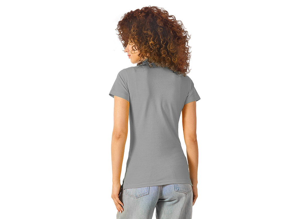 Женская рубашка-поло First. Воротник 1х1. Обшивка внутри воротника. Мужская и детская модели с 2 пуговицами, женская - с 4 пуговицами. Пуговицы с гравировкой в тон. Пике, 100% хлопок. 160 г/м2.