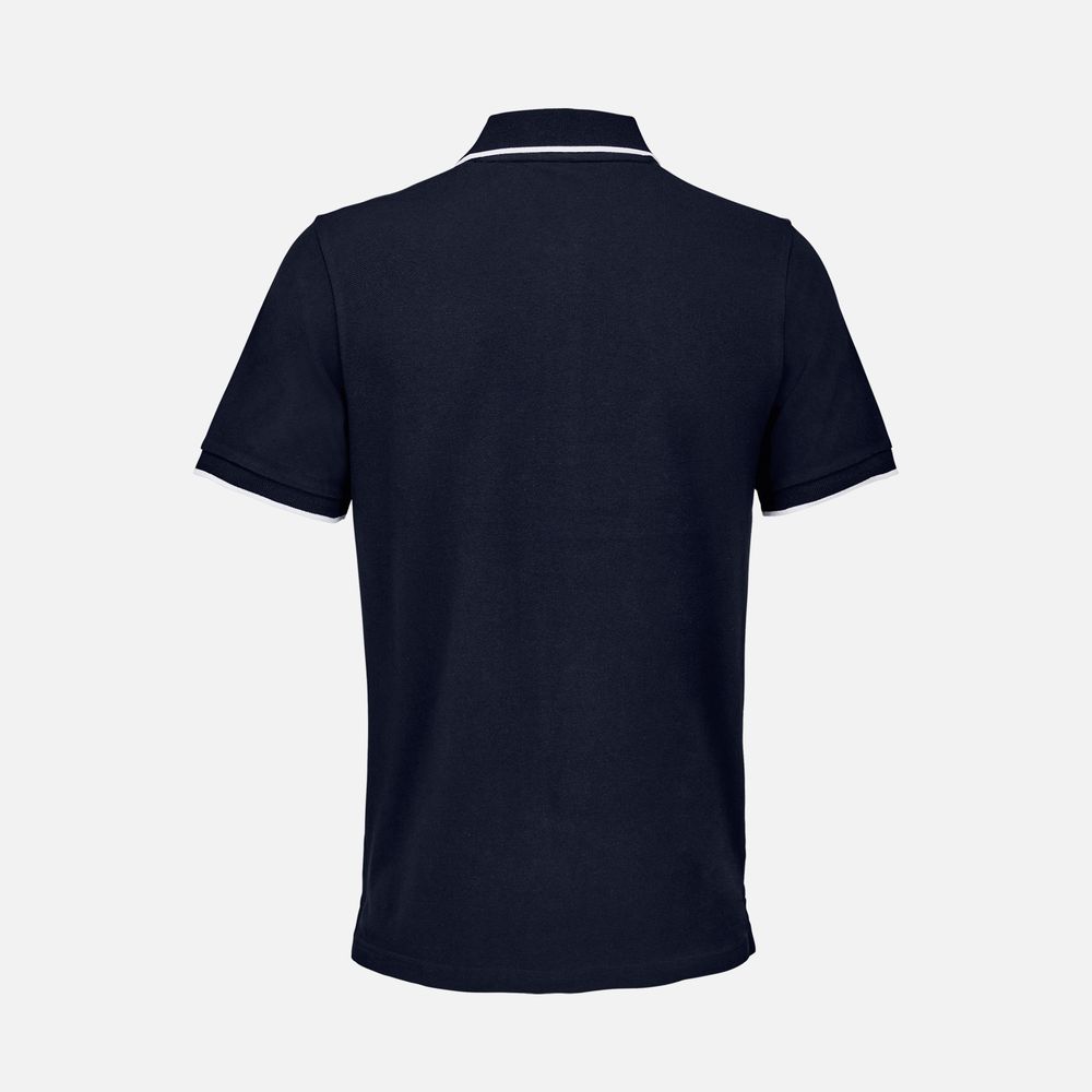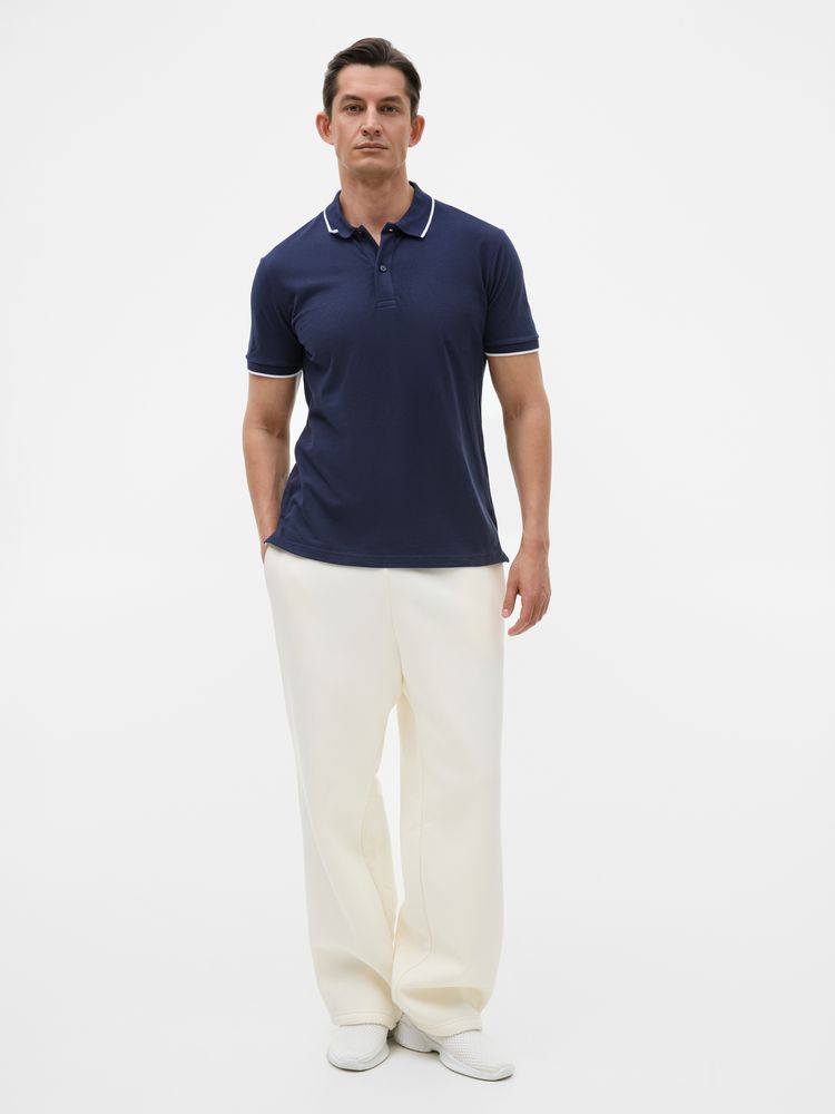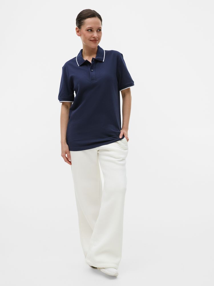 Рубашка поло средней плотности прямого кроя с контрастными деталями. Подойдет как мужчинам, так и женщинам.