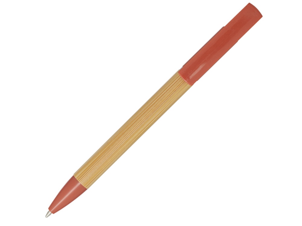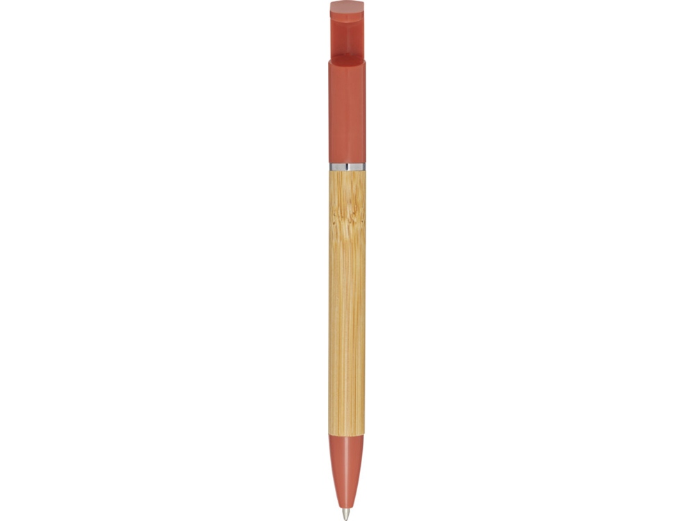 Бамбуковая шариковая ручка, которая также может служить подставкой для телефона. Кнопка и среднее кольцо изготовлены из переработанного пластика, наконечник — из латуни, а корпус — из бамбука, полученного из ответственных источников. Цвет чернил: синий. Длина непрерывной линии: 1000 метров. Размер пера: 1,0 мм. FSC certified bamboo. FSC Mix Credit N5 CU-COC-877277.