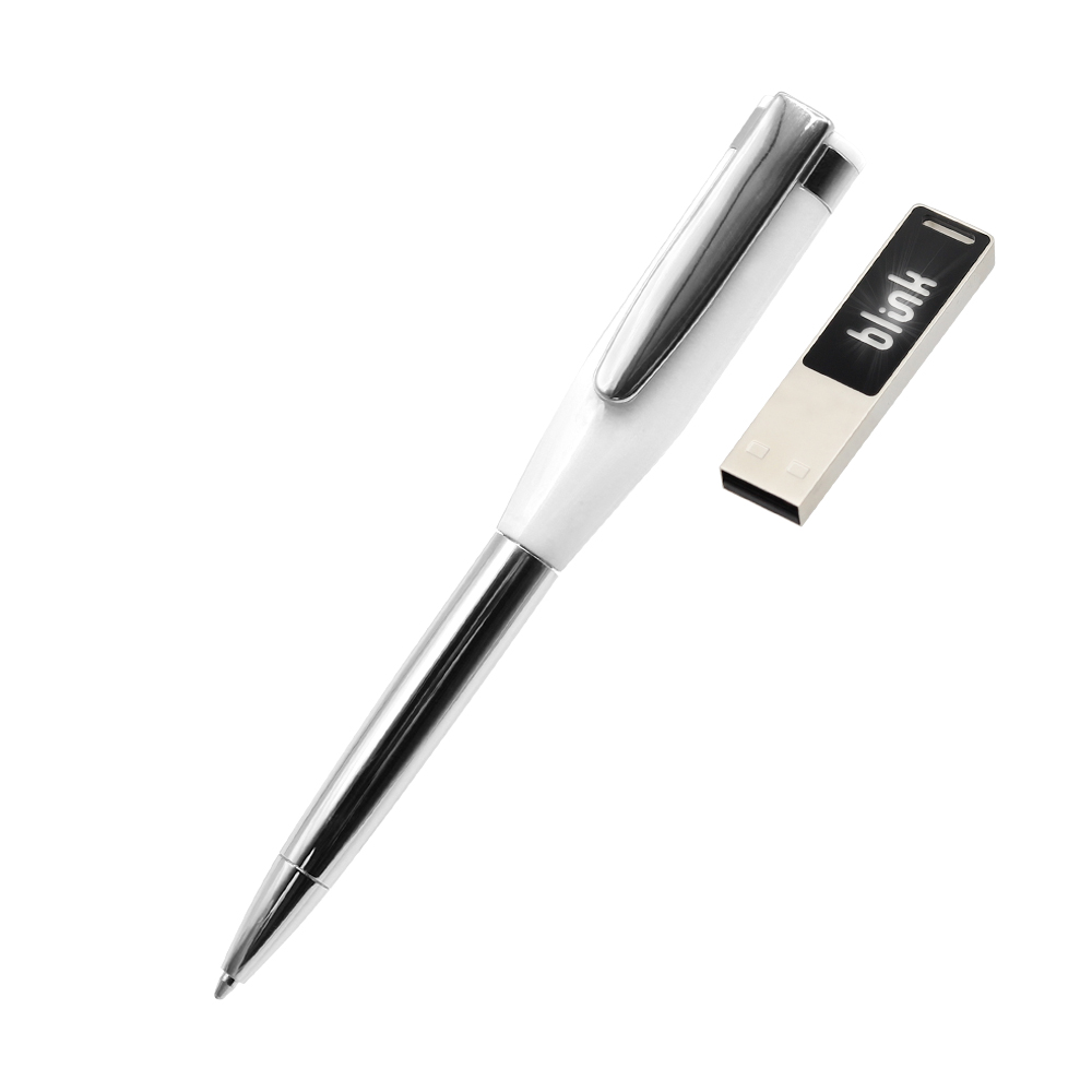 Ручка металлическая Memphys c флешкой 64Гб, белая можно заказать в нашей компании по самой доступной цене от 766.67 рублей.