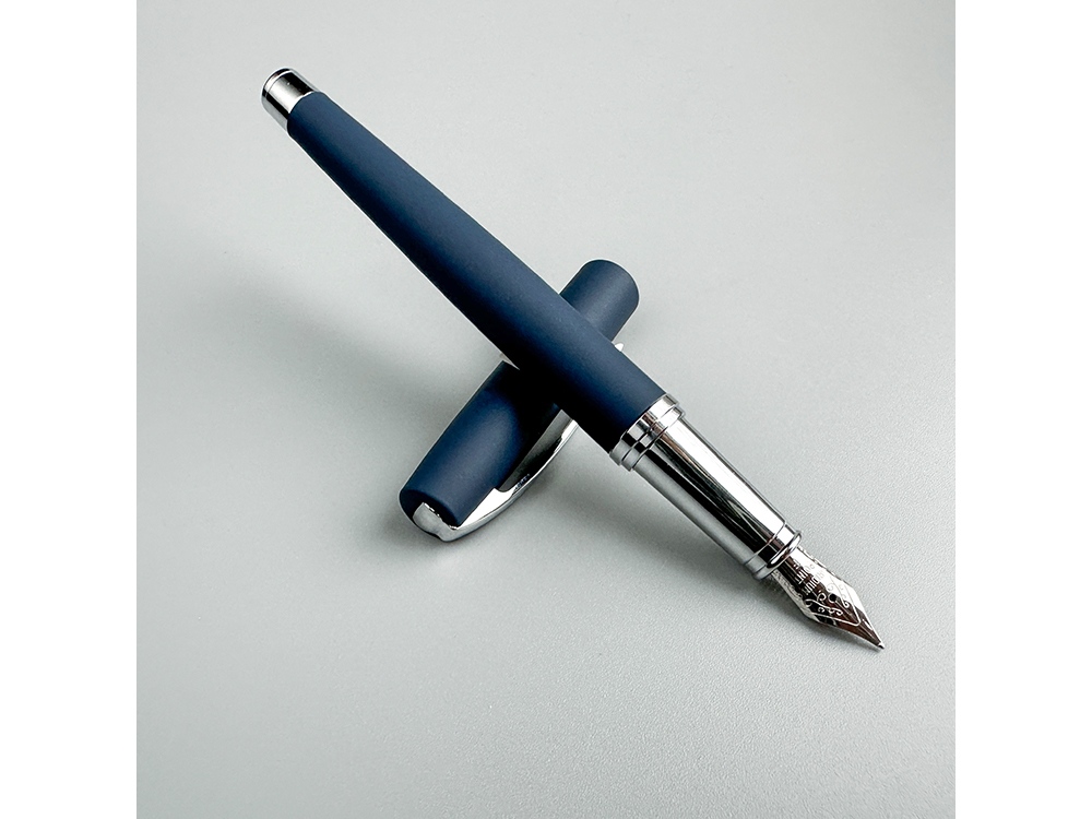 Cтильная перьевая ручка Sienna от Bruno Visconti синего цвета с контрастирующими элементами в цвет серебра. Благодаря покрытию Soft Touch пальцы не скользят по корпусу ручки, письмо комфортное и легкое. Ручка оснащена высококачественным механизмом подачи чернил, благодаря которому линия остается однородной и аккуратной. Чернила не токсичны, на основе водорастворимого красителя, не забивают фидер. Перьевой наконечник выполнен из иридиума и дополнен орнаментом.
