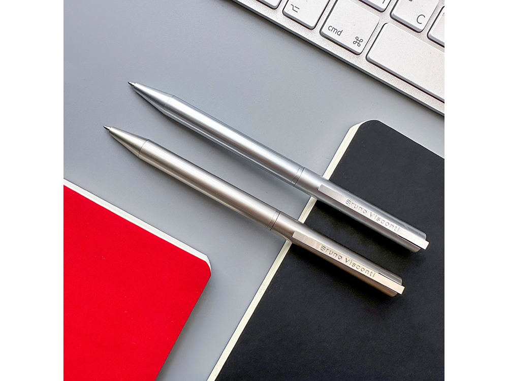 Шариковая ручка из коллекции Bergamo в металлическом корпусе. Ручка автоматическая с легким поворотным механизмом подачи стержня. Надежный пишущий узел d 0,7 мм (от швейцарского производителя Premec) гарантирует высокое качество также, как и пигментные чернила Dokumental (Германия). Благодаря им писать ручкой Bergamo от Bruno Visconti одно удовольствие – она мягко скользит по поверхности бумаги, оставляя ровную, четкую линию.