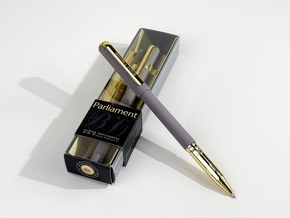 Ручка Parliament с чернилами на масляной основе синего цвета отличается мягким письмом и толщиной линии 0,5 мм. Ее прорезиненный корпус soft-touch обеспечивает комфорт при длительном использовании, а отвинчивающийся наконечник облегчает доступ к сменному стержню. Колпачок с клип-зажимом обеспечивает удобное крепление ручки на одежде или сумке. Качество письма обеспечивается премиальным швейцарским пишущим узлом диаметром 0,7 мм от производителя Premec и немецкими чернилами марки Dokumental. Ручка упакована в индивидуальную подарочную упаковку.