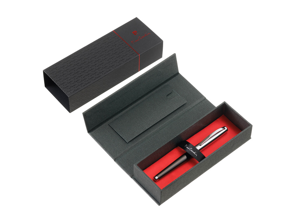 • Металлический стержень с логотипом Pierre Cardin на корпусе, с чернилами синего цвета для роллерной ручки;