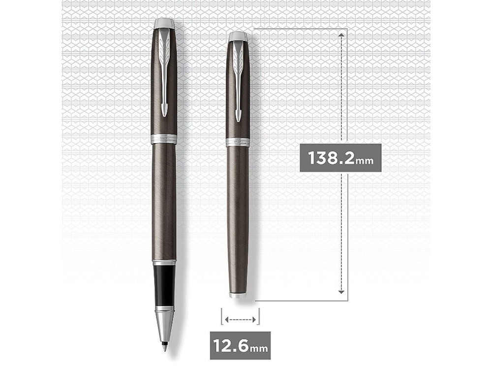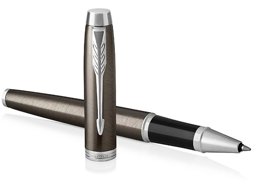 Ручка-роллер IM Core со съемным колпачком. Корпус и колпачок из латуни, покрыт лаком коричневого (шоколадного) цвета, превосходно сочетается с хромированными декоративными элементами. Зона захвата выполнена из глянцевого черного пластика. Выгравированный логотип PARKER на декоративном хромированном кольце.