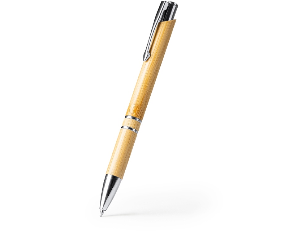 Шариковая ручка с корпусом из бамбука и кнопкой с металлической отделкой. Синие чернила