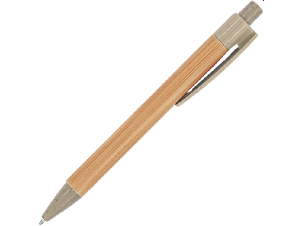 Шариковая ручка с бамбуковым корпусом. Наконечник, клипса и кнопка из пшеничного волокна / ABS. Синие чернила.