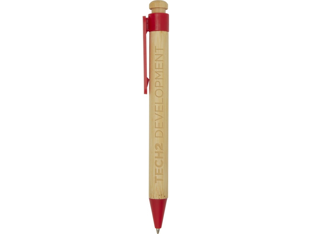Шариковая ручка с зажимом и наконечником из переработанного пластика, а кнопка и корпус изготовлены из бамбука. Цвет чернил: черный. Длина непрерывной линии: 1000 метров. Размер пера: 1,0 мм. Бамбук.
