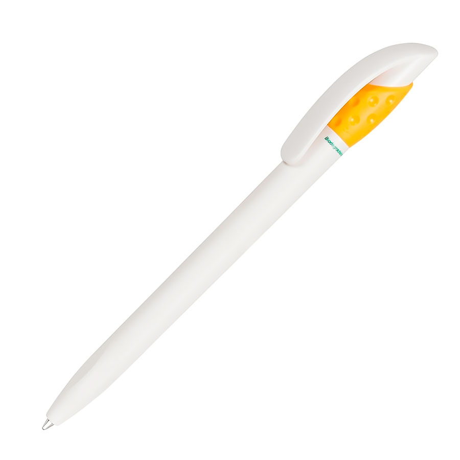 Корпус ручки изготовлен из пластика на основе кукурузного и картофельного крахмала. Такой пластик разлагается в земле всего за 6 месяцев. Pantone, близкий к 7409С.