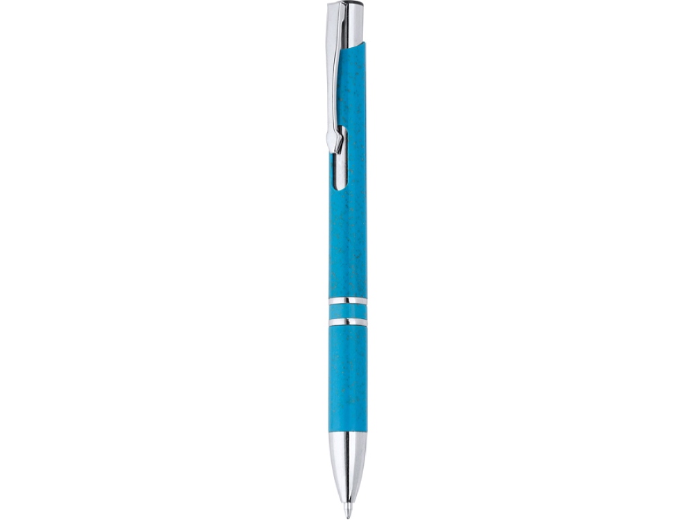 Ручка из пшеничного волокна и АБС-пластика с серебристой отделкой. Синие чернила.