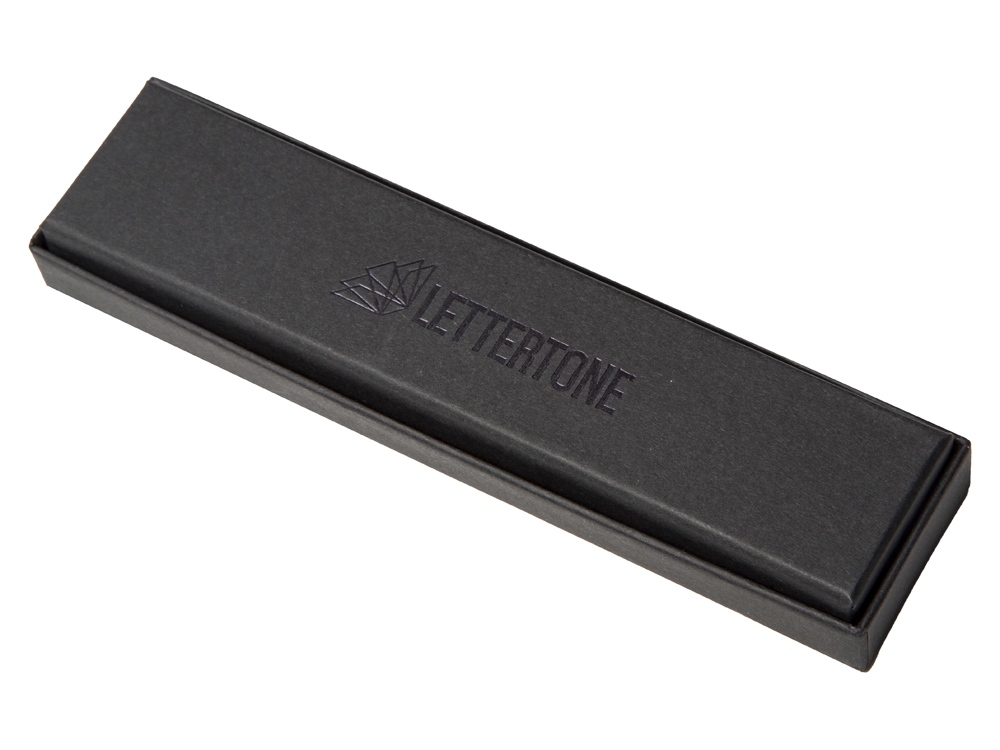 Ручка поставляется в чёрной матовой коробочке с прозрачным логотипом Lettertone на дне.