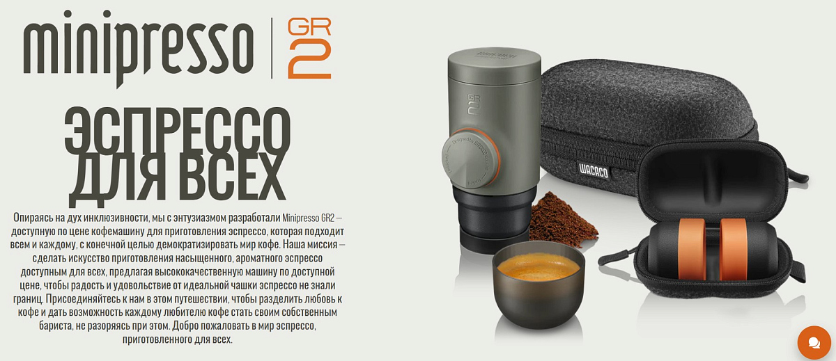 Ручная мини-кофемашина WACACO Minipresso GR2 можно заказать в нашей компании по самой доступной цене от 7 591 рублей.