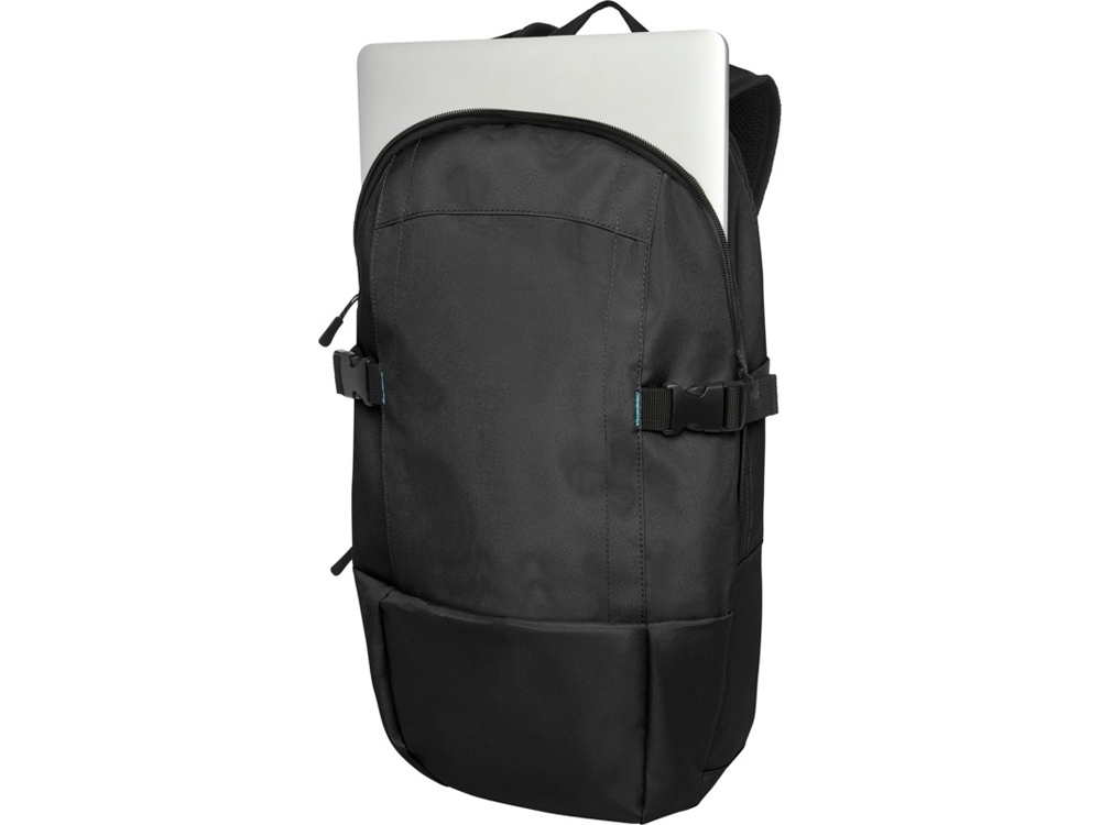 Рюкзак для ноутбука, изготовленный на 40 % из переработанных материалов и ПЭТ, сертифицированного по GRS. Имеет большое основное отделение на молнии с мягким чехлом для ноутбука 15, которое закрывается на липучку, крюк для подвешивания и вертикальное отделение на молнии. Оснащен ремнями с пряжкой для дополнительной фиксации, удобными наплечными ремнями со смягчающей прокладкой, ручкой, сетчатой задней частью с карманом на молнии и расширяющимся сетчатым боковым карманом.
