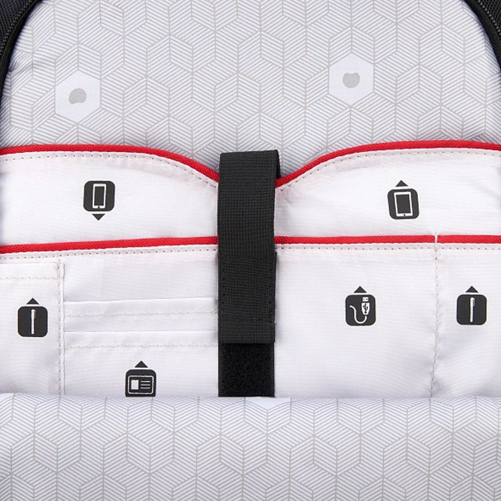 - Передний органайзер на молнии с карманами для телефона, визиток, документов, ручек и кабеля