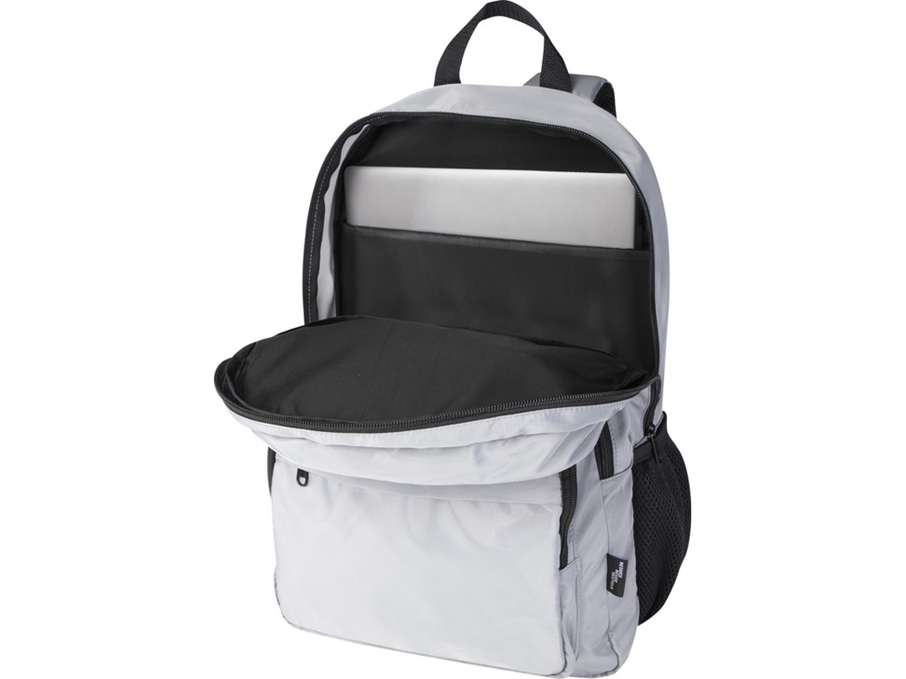 Рюкзак Trend Plus изготовлен из сертифицированной согласно GRS переработанной мягкой и немнущейся ткани и качественной подкладки из RPET. Рюкзак оснащен отделением для ноутбука диагональю 15, отделением-органайзером, передними карманами на молнии, боковыми эластичными сетчатыми карманами и сетчатой вентилируемой задней частью с лямкой для крепления к ручке чемодана. Регулируемые плечевые ремни для оптимального комфорта при ношении. Объем: 20 литр. Выдерживает вес до 10 кг. Не содержит ПВХ. GRS certified recycled polyester.