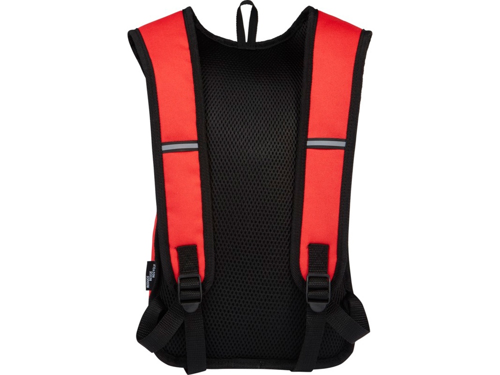 Рюкзак Trails изготовлен из 100% переработанной по стандарту GRS водоотталкивающей ткани и имеет один передний карман на молнии и одно основное отделение на молнии, а также отделение для гидросистемы. Светоотражающие полосы для видимости и сетчатая задняя часть для комфорта при переноске делает его отличным экологичным выбором для активного отдыха.