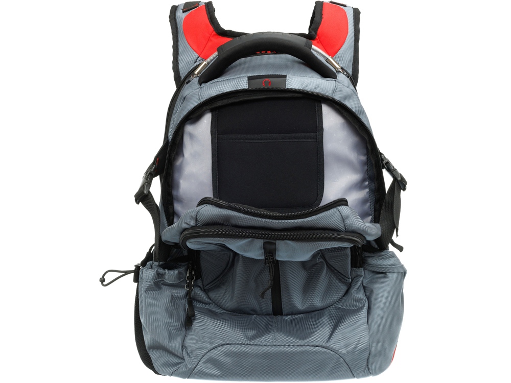 Благодаря боковым карманам, вы можете носить с собой бутылку с водой или зонт. Спинка и ремни оборудованы системой циркуляции воздуха. Карман-органайзер и кольцо для ключей позволят вам упорядоченно хранить большое количество мелких вещей. Усиленная эргономичная ручка с металлическим тросом позволяет носить рюкзак не только на спине, но и в руках, когда это необходимо. Поясной ремень для поддержания рюкзака сделает ношение рюкзака еще более удобным. Рюкзак выполнен в сером цвете с красной отделкой, что делает его универсальным и стильным. Объём 30 л позволяет вместить всё необходимое.