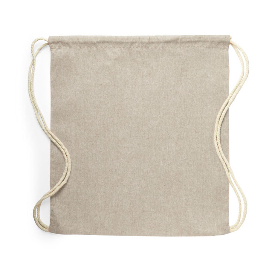 Промо-рюкзак выполнен из 100% переработанного хлопка, плотностью 120 г м2. Переработанный хлопок получается из отходов текстильного производства или из старой одежды. Исходный материал измельчается, потом из этой массы вытягивают нити, из которых ткут новую ткань.