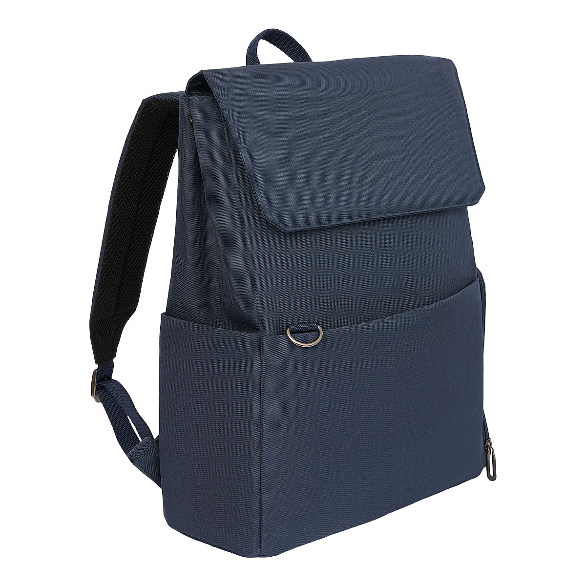 Основное отделение вмещает ноутбук до 15,6 дюймов в уплотненном кармане с фиксирующим ремнем на липучке. Внутри основного отделения есть карман для фиксации пластиковой бутылки или небольшого термоса. Боковые карманы разного типа — один объемный на молнии, второй плоский — позволяют удобно разместить все необходимые вещи.