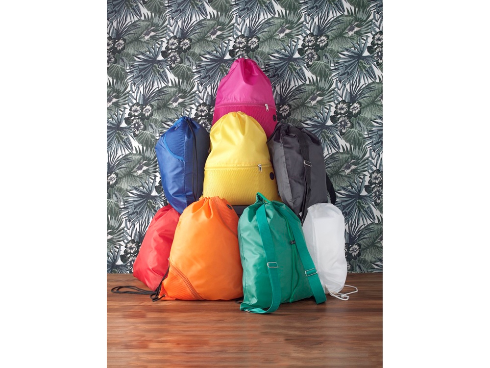 Рюкзак со шнурком и главным отделением на шнуровке белого цвета. Имеет цветные укрепленные углы. Прочность до 5 кг.