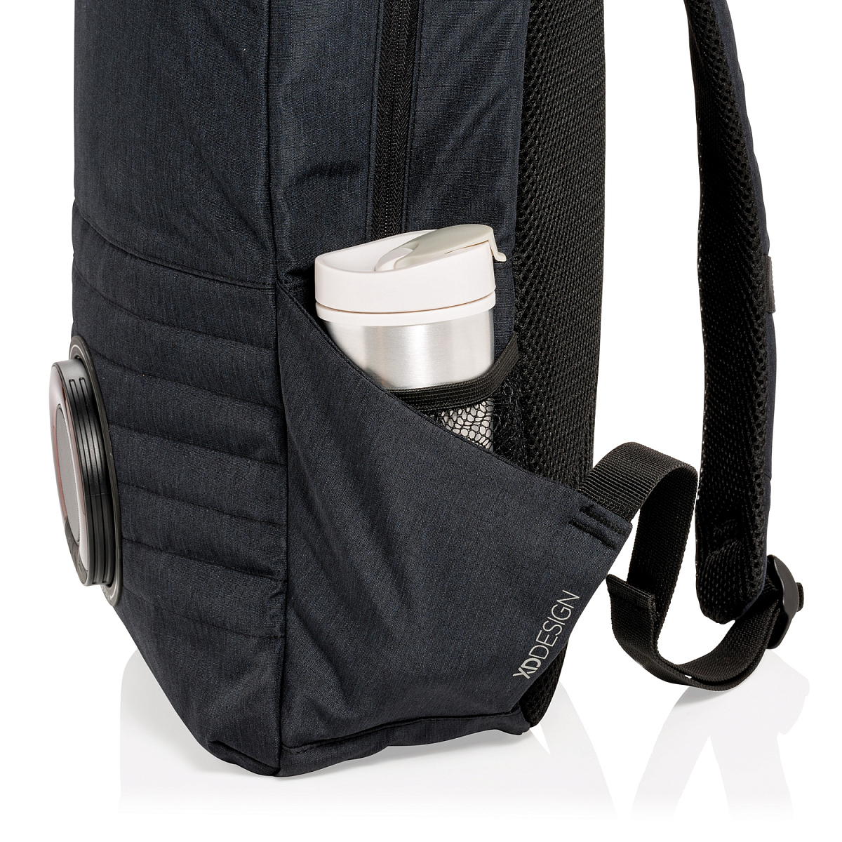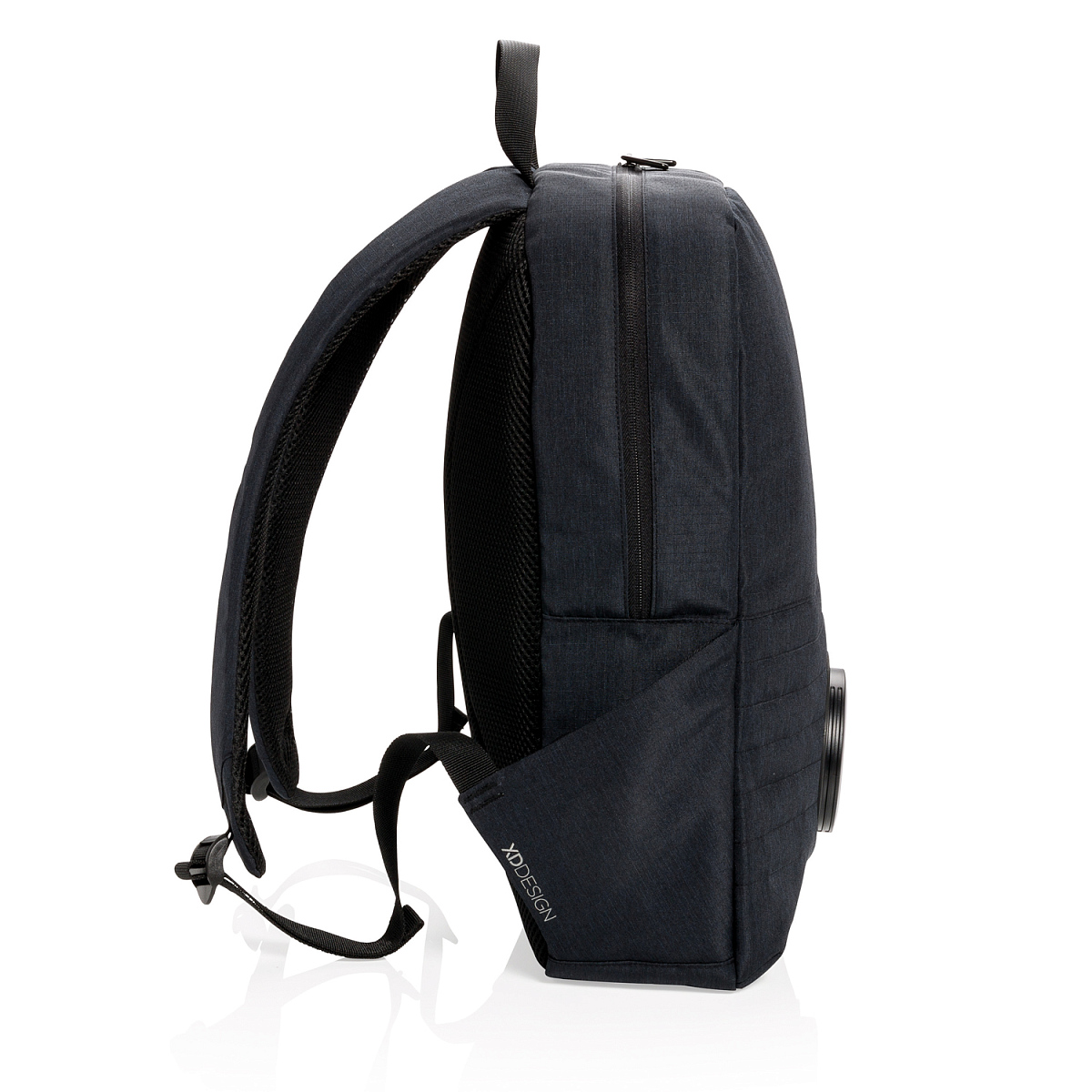 Стильный рюкзак Party – просто находка для веселых и динамичных людей. На передней части расположена съемная колонка, которая не только проигрывает музыку, но еще и светится, меняя при этом цвет. Колонка надежно защищена от попадания воды и пыли, степень защиты IPX5. При необходимости, беспроводную колонку можно снять и использовать отдельно, для этого нужно просто повернуть ее и потянуть на себя. Время работы без дополнительной подзарядки составляет 5 часов. На рюкзаке также предусмотрен выход USB. Подсоедините свой внешний аккумулятор к кабелю внутри рюкзака, а зарядный кабель смартфона – к выходу USB, таким образом можно заряжать телефон на ходу. Зарегистрированный дизайн® Длина 47 см., ширина 33 см., высота 13 см., диаметр 0 см.
