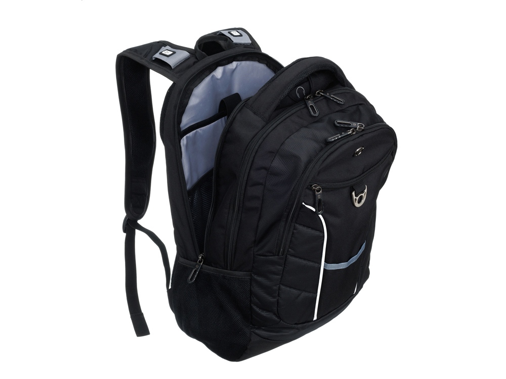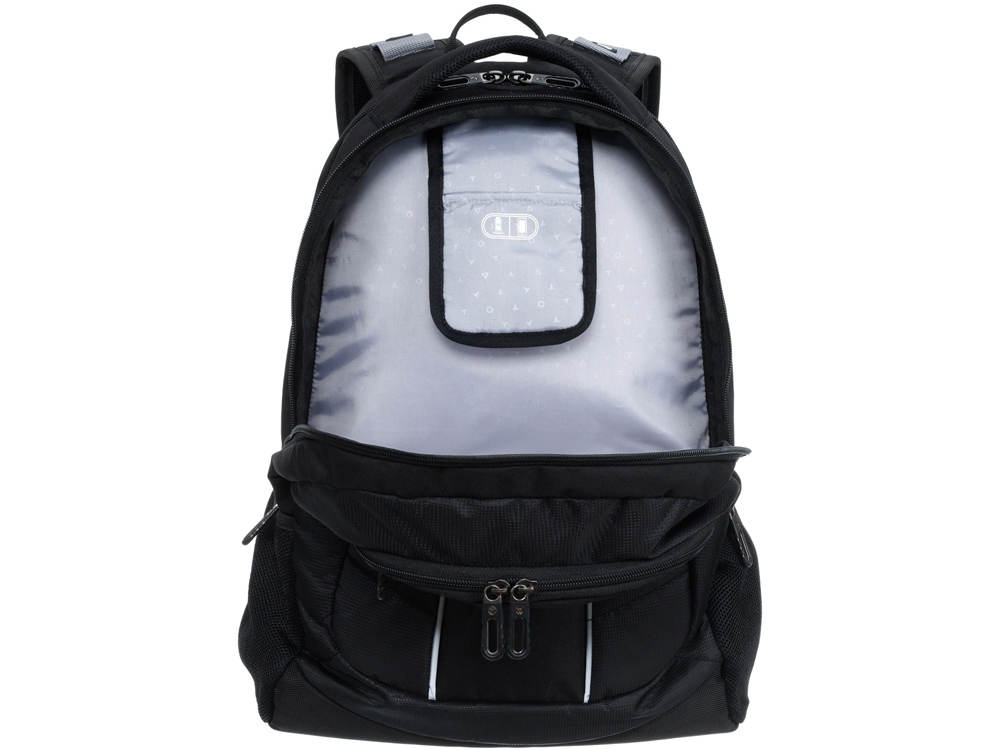 Рюкзак оборудован специальным отделением для ноутбука с диагональю экрана 15. По бокам рюкзака расположены два сетчатых кармана для бутылок с водой или зонта. Рюкзак имеет специальное отделение для телефона или зарядного устройства с отверстием для наушников/проводов.