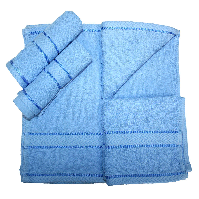 Натуральные гладкокрашеные махровые салфетки с жаккардовой косичкой из экологически чистого 100% хлопка, голубого цвета.