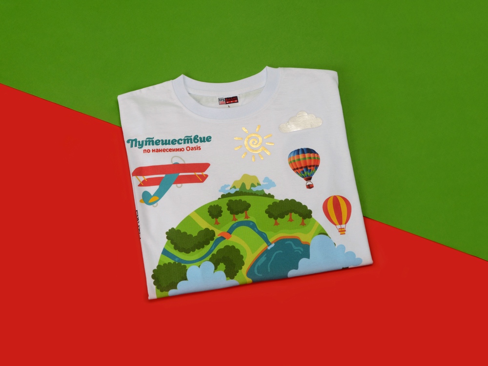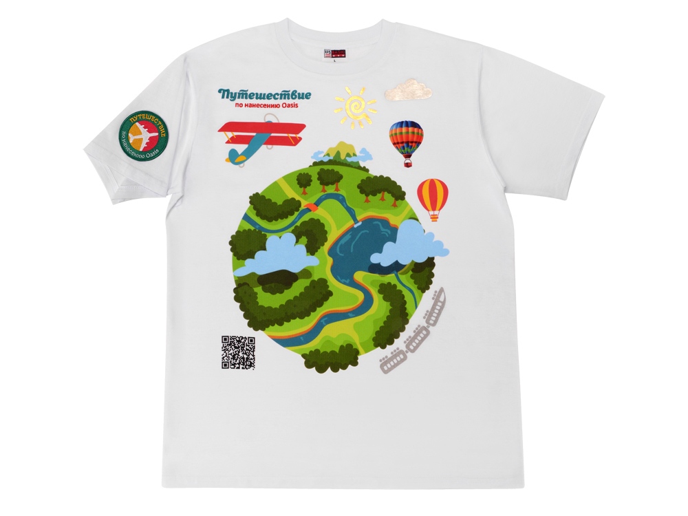 Зачем нужно огромное количество индивидуальных образцов, если можно посмотреть все виды нанесения на одной футболке? Благодаря нашему новому сету все виды нанесения на текстиль теперь у вас под рукой. Образец футболки демонстрирует 9 видов нанесения: от самых популярных, вышивки и текстильного принтера, до трафаретной печати с золотой фольгой и DTF. Сет очень компактный, его легко использовать на презентациях в офисе, а также выезжать непосредственно к клиенту. Футболка в сете настолько классная, что ее можно надеть на себя и рассказывать о продукте где угодно, без компьютера и проектора. А еще на футболке вы можете найти QR-код, который ведет на сайт с информацией о каждом из видов нанесения. Сайт ответит на любые вопросы клиента, расскажет, в чем преимущества каждого вида нанесения, а также сориентирует по срокам изготовления. Путешествуйте с нами! Размер футболки L