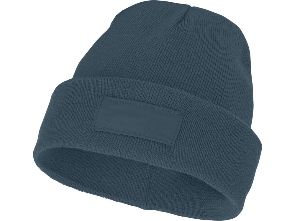 Шапка Бореас с нашивками. Однослойная лыжная шапочка с двойными подвернутыми краями. Вязка в рубчик 1x1 из 100 % акрила. Нашивка из 100 % полиэстера.
