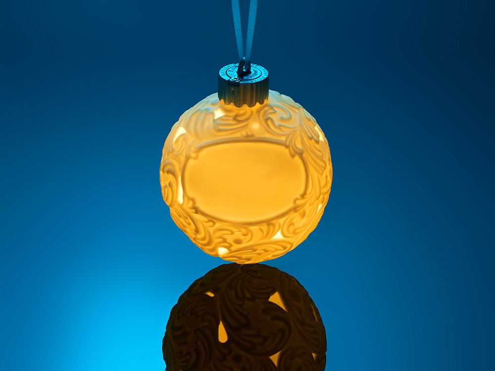 Шар новогодний с подсветкой и зоной для персонализации можно заказать в нашей компании по самой доступной цене от 7 000 рублей.