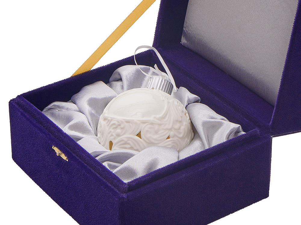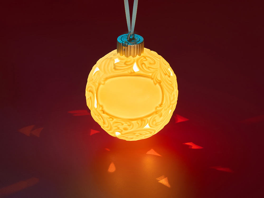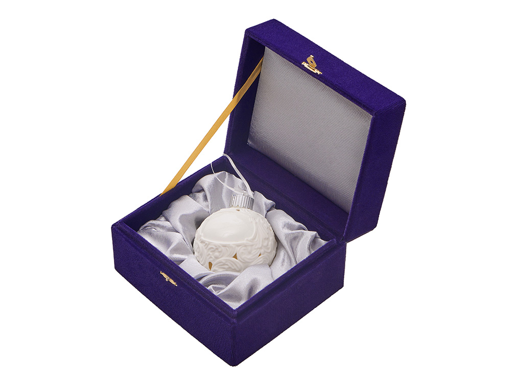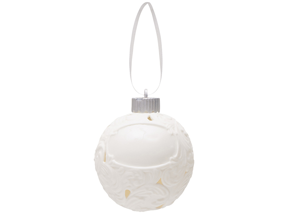 Фарфоровый шар с росписью в технике бисквит. Игрушка ручной работы. Матовая, бархатистая поверхность и пастельные тона создают утонченный образ старинного зимнего праздника. Это воплощение изящества и ностальгии. Шар светится изнутри мягким и ровным светом, наполняя пространство атмосферой спокойствия и волшебства.