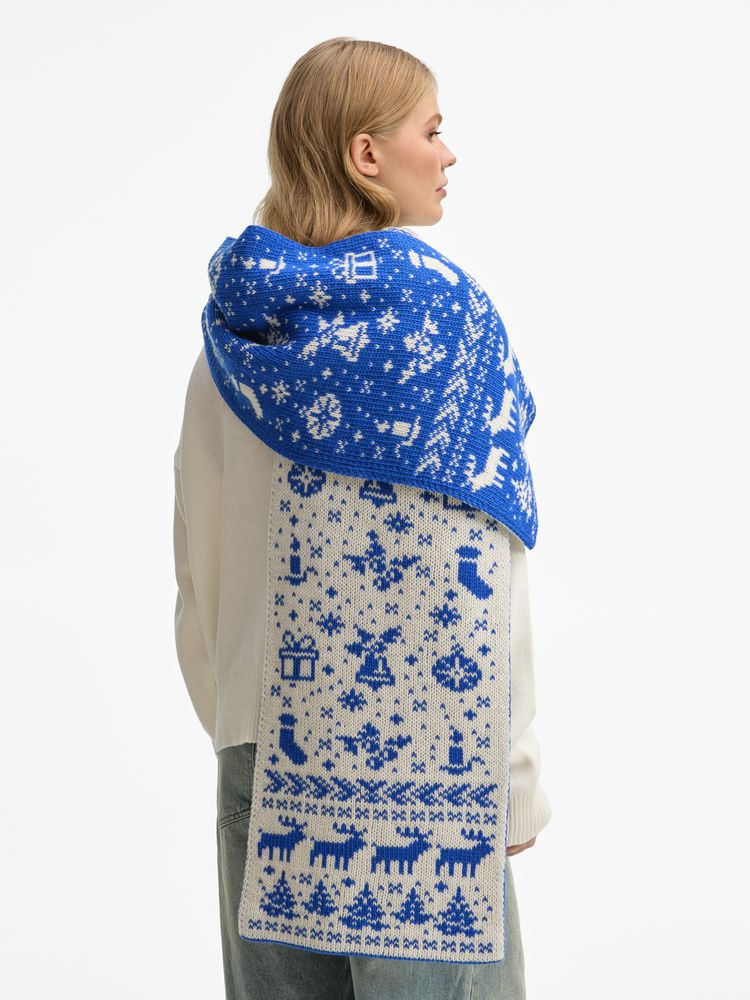 Шарф Holidale выполнен из высокообъемной полушерстяной пряжи, которая дарит тепло и ощущение праздничного уюта. Изысканный жаккардовый узор в традиционных зимних цветах, контрастные сочетания и объемная текстура подчеркивают праздничный характер аксессуара.
