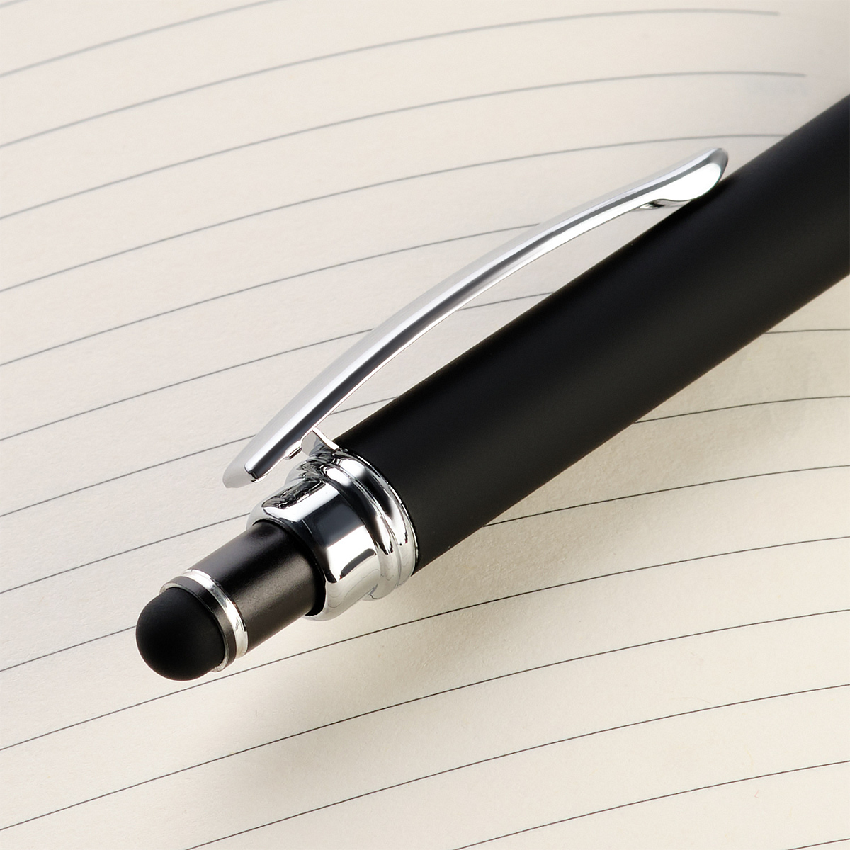 Ручка оснащена стилусом в цвет корпуса для работы с сенсорными экранами. Декоративная обработка основания ручки, благодаря которой ручку еще удобнее держать в руке.
