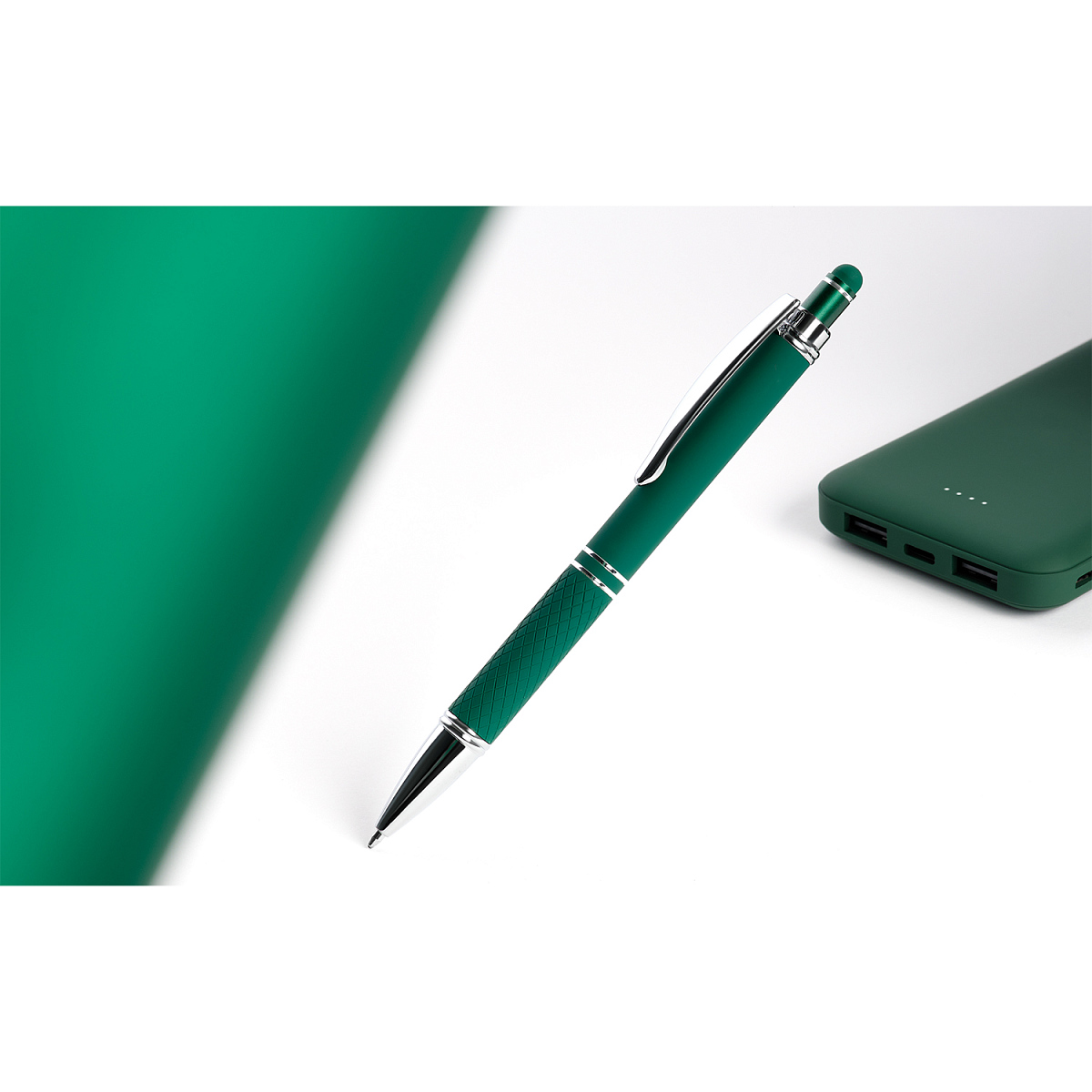Ручка оснащена стилусом в цвет корпуса для работы с сенсорными экранами. Декоративная обработка основания ручки, благодаря которой ручку еще удобнее держать в руке.