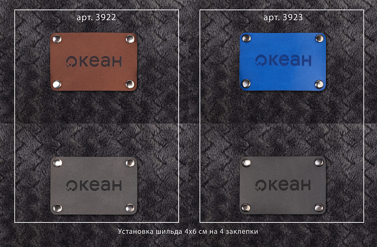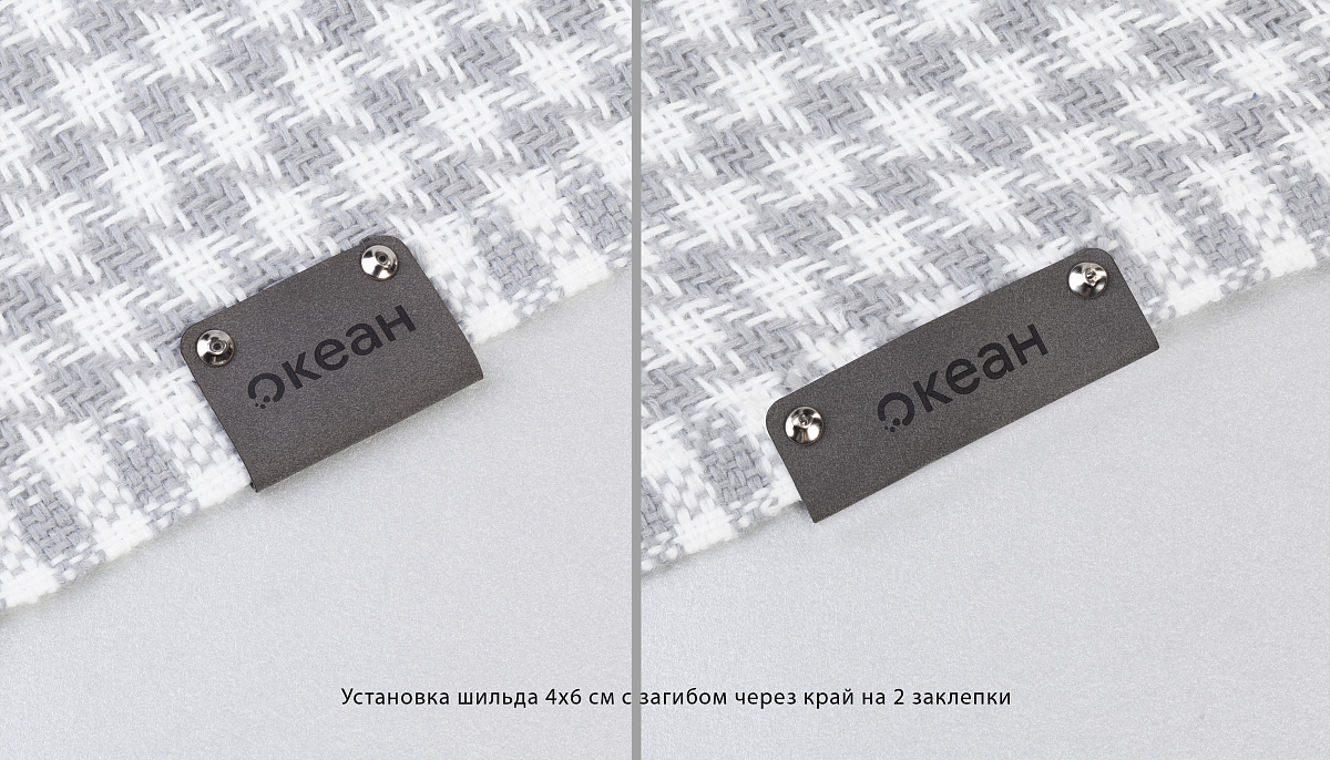 Шильд 4 х 6 см для кастомизации пледов и других изделий. Матовый материал с имитацией фактуры замши. Установка производится на металлические хольнитены (заклепки) по углам.