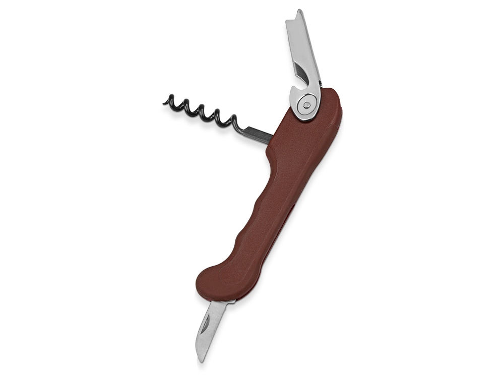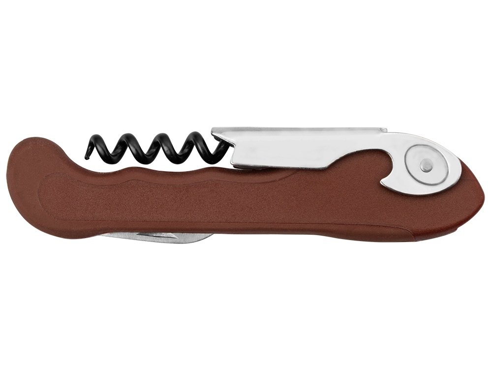 Компактный складной штопор с открывалкой и небольшим ножиком пригодятся как в домашних, так и в походных условиях. На корпусе штопора можно разместить логотип организации, занимающейся туристическим снаряжением. В наличии две расцветки.