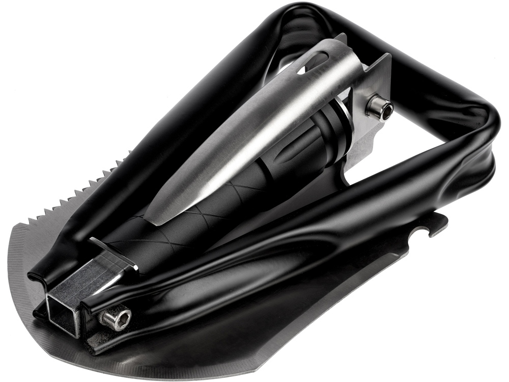 Лопата с V-образным острием легко врезается в почву. Треугольная ручка позволяет удерживать инструмент в любом удобном положении, экономя силы. А пила с разнонаправленными зубьями быстро и ровно пилит при каждом движении.
