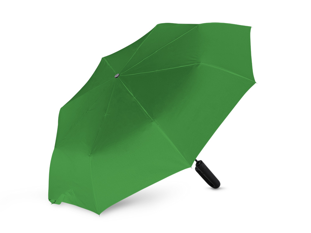Складной зонт из экологичного материала RPET (переработанный полиэстер) с автоматическим механизмом открывания и закрывания. Продуманная конструкция выдерживает ветреную погоду и удобна в транспортировке.