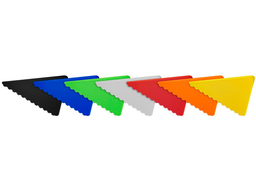 Треугольный скребок для удаления льда с лобового стекла, имеющий большую площадь для декорирования. Сделано в Великобритании из переработанного полистирольной пластмассы. Переработанный HIPS пластик.