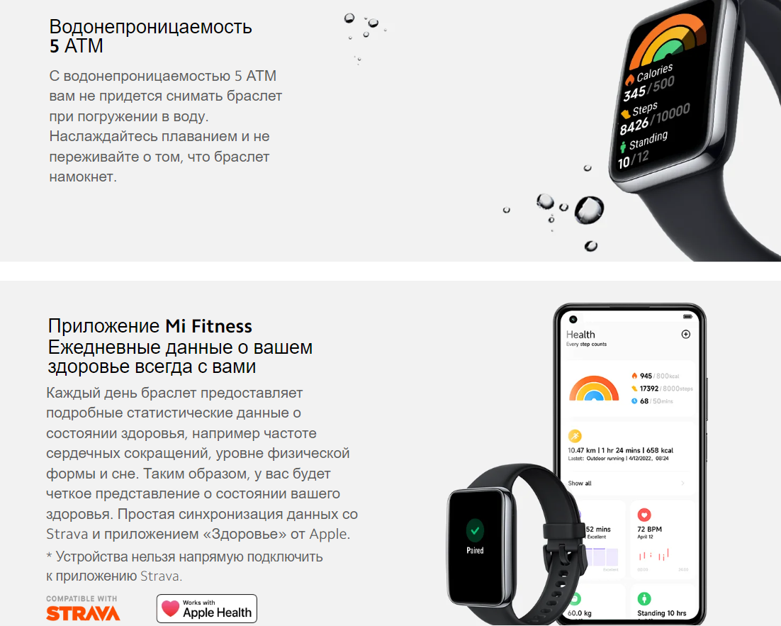 Особенности: водонепроницаемость 5 АТМ; Bluetooth 5.2 BLE; яркость экрана до 500 нит, регулируемая; 2.5D закаленное стекло с покрытием, защищающим от отпечатков пальцев; магнитная зарядка