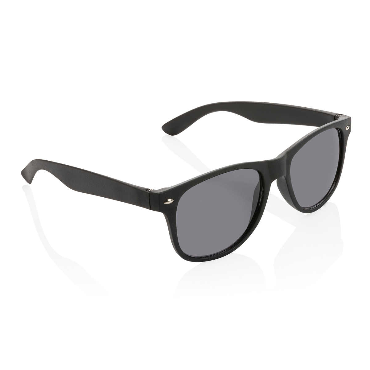 Солнцезащитные очки из полипропилена с черными акриловыми линзами с защитой UV 400. Петли с металлическими винтами для надежного крепления дужек. Длина 14,5 см., ширина 4,7 см., высота 2,7 см., диаметр 0 см.