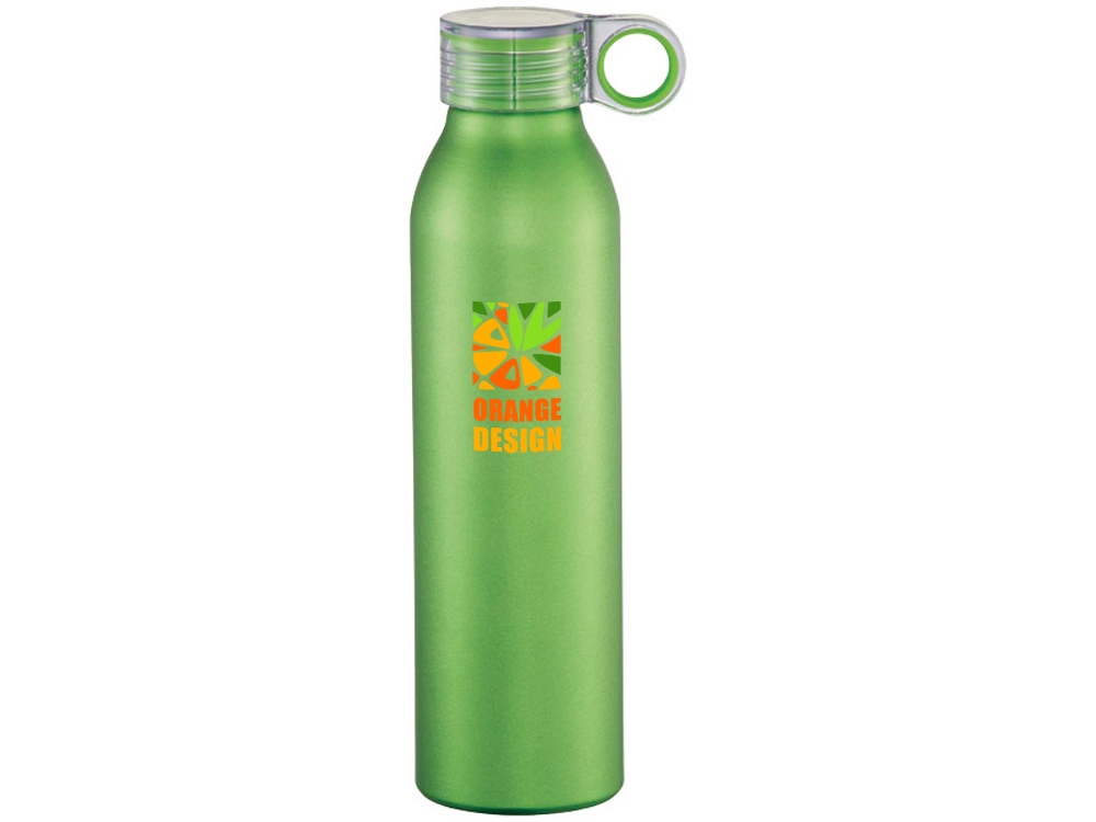 Спортивная алюминиевая бутылка Grom. Одинарные стенки. Откручивающаяся крышка с защитой от протекания и цветным акцентом. Удобная в пути. Объем 650 мл. Алюминий.