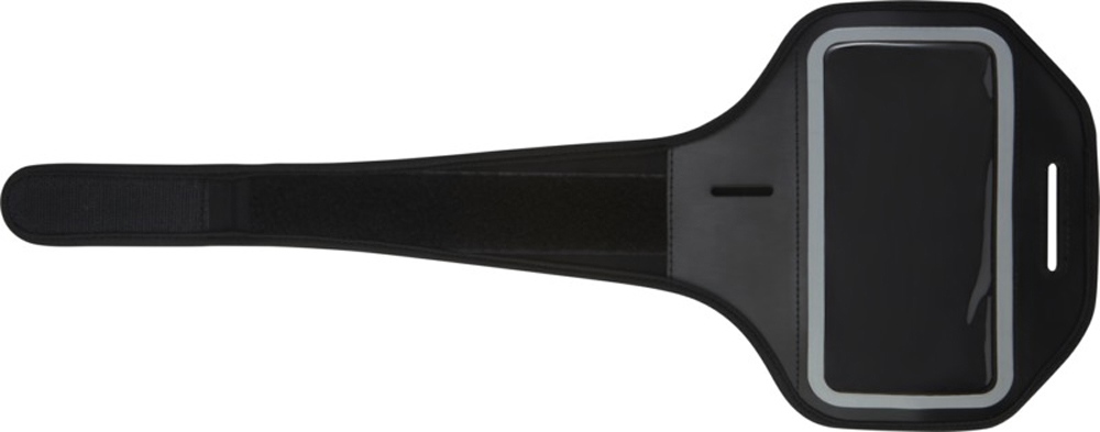 Регулируемый чехол на липучке с прозрачным окном. Для эксплуатации и защиты смартфона во время бега или любой другой деятельности. Подходит для многих смартфонов большего размера, таких как iPhone X, 8, 7, 6, 5 и/или Galaxy Note S9, S8, S7, S6. Размер кармана для телефона 8 х 18 см. Прозрачное окошко имеет отражающую полосу для улучшения отображения в темноте. Ремешок на липучке можно отрегулировать под разные размеры. Имеет дополнительный карман для хранения ключей или монет. Неопрен, ПВХ.