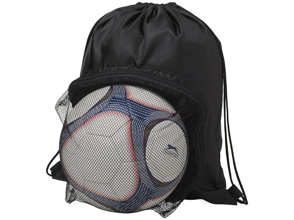 Спортивный рюкзак, стягивающийся вверху шнуром. Большое основное отделение с кулиской. Сетчатое отделение на молнии спереди для футбольного мяча.