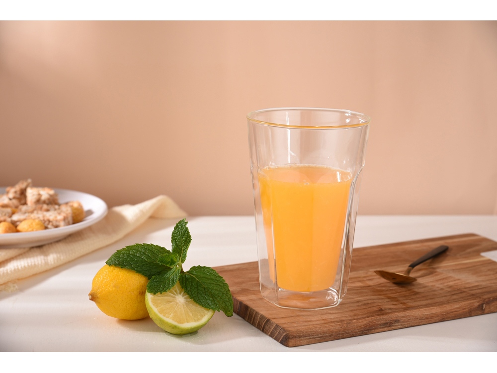 Этот стеклянный стакан с гранями Silva — идеальное сочетание ностальгии и современных технологий. Внутренние грани, вдохновленные классическими советскими стаканами, придают ему винтажный шарм, а двойные стенки помогают дольше сохранять температуру напитка и предотвращают обжигание рук.