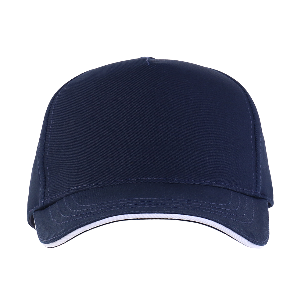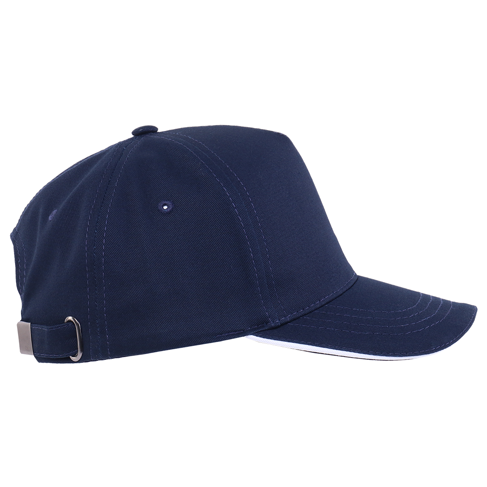 Пятиклиновый пошив, отсутствие лобового шва и изогнутый жесткий козырек «сэндвич» с контрастным кантом. Посадка регулируется ремешком с металлической застежкой.