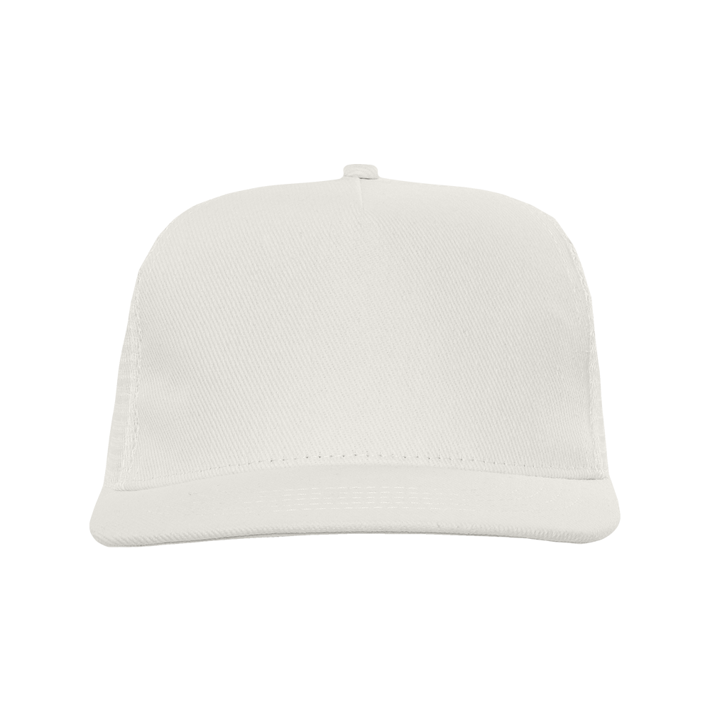 Бейсболка-пятиклинка с прямым жестким козырьком и пластиковой регулируемой застежкой, боковые клинья выполнены из жесткой сетки.